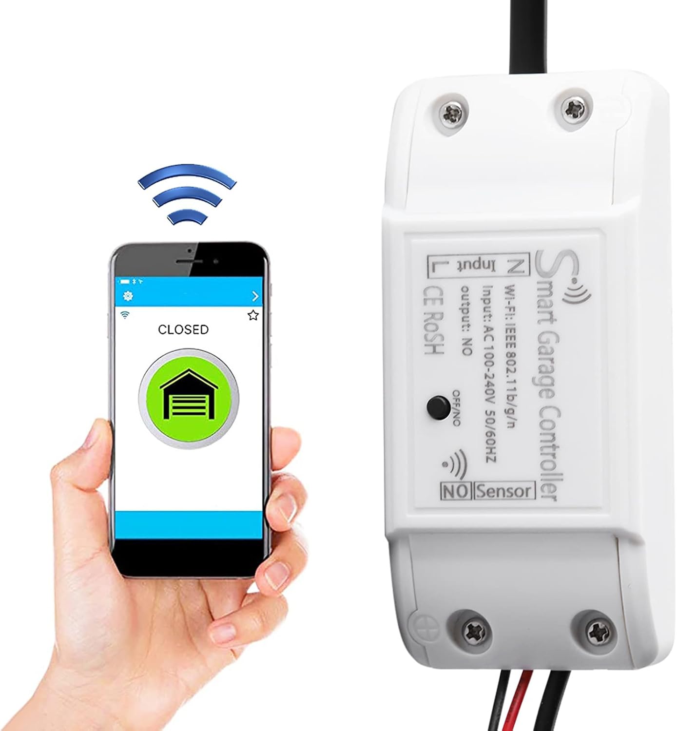 Fácil de instalar: Controlador Wi -Fi para portas de garagem Controle a porta da garagem com a conexão Wi -Fi do telefone necessária para facilitar a instalação sem a necessidade de um controlador profissional de porta automático para famílias inteligentes, o material abd. Para abrir e fechar sua garagem remotamente através do seu smartphone