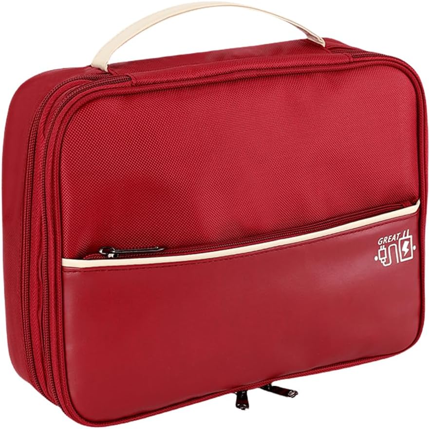 Fácil de transportar: la bolsa organizadora de cables. El asa de transporte de terileno te permite llevar esta bolsa de accesorios de viaje fácil y cómodamente en cualquier momento. La cremallera de metal permite que la funda se abra sin problemas, fácil de poner o quitar los dispositivos