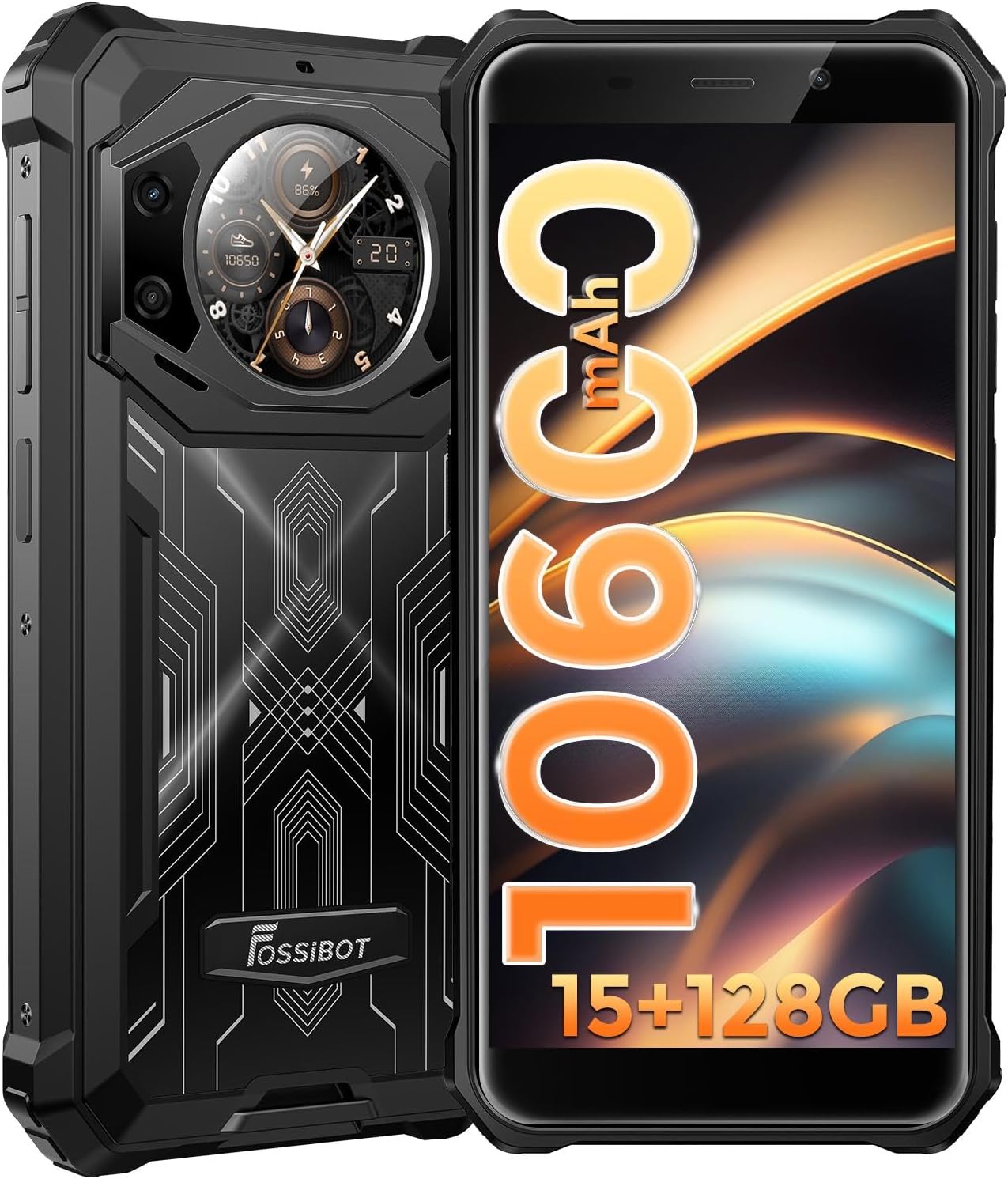 【15 GB de RAM + 128 GB de ROM e MT8788 P60】 O chip de smartphone resistente Fossibot F101 Pro Equipera MT8788 P60. Integra uma CPU octa-core, processadores ARM Cortex-A73 de até 2,0 GHz e um poderoso GPU ARM Mali G72 para maximizar o desempenho em jogos e aplicativos do dia a dia. 15 GB de RAM (8 GB de RAM fixa + 7 GB de RAM ajustável) são suficientes para qualquer aplicação, 128 GB de ROM para arquivos multimídia e memória expansível para 1 TB
